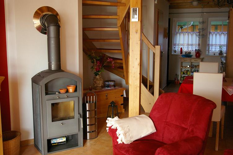 Spülmaschine usw.). Im Wohnraum befinden sich ein Kaminofen für